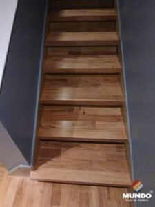 Escalera artesanal realizada con madera natural de vivaró en tablas de 3/4″ x 4″