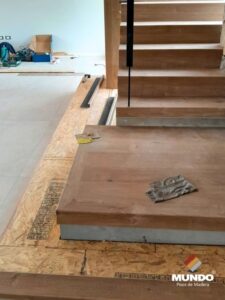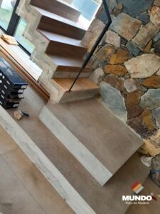 Escalera artesanal realizada con un piso vinílico de alto tránsito modelo Aconcagua.