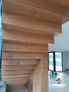 Los escalones se fabrican sobre una base estructural de fenólico de alta resistencia, lo que aporta mayor solidez, estabilidad y durabilidad. Esta técnica permite lograr terminaciones prolijas, seguras y estéticamente modernas. Ideales para espacios de uso intenso.