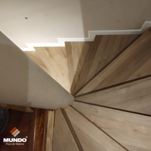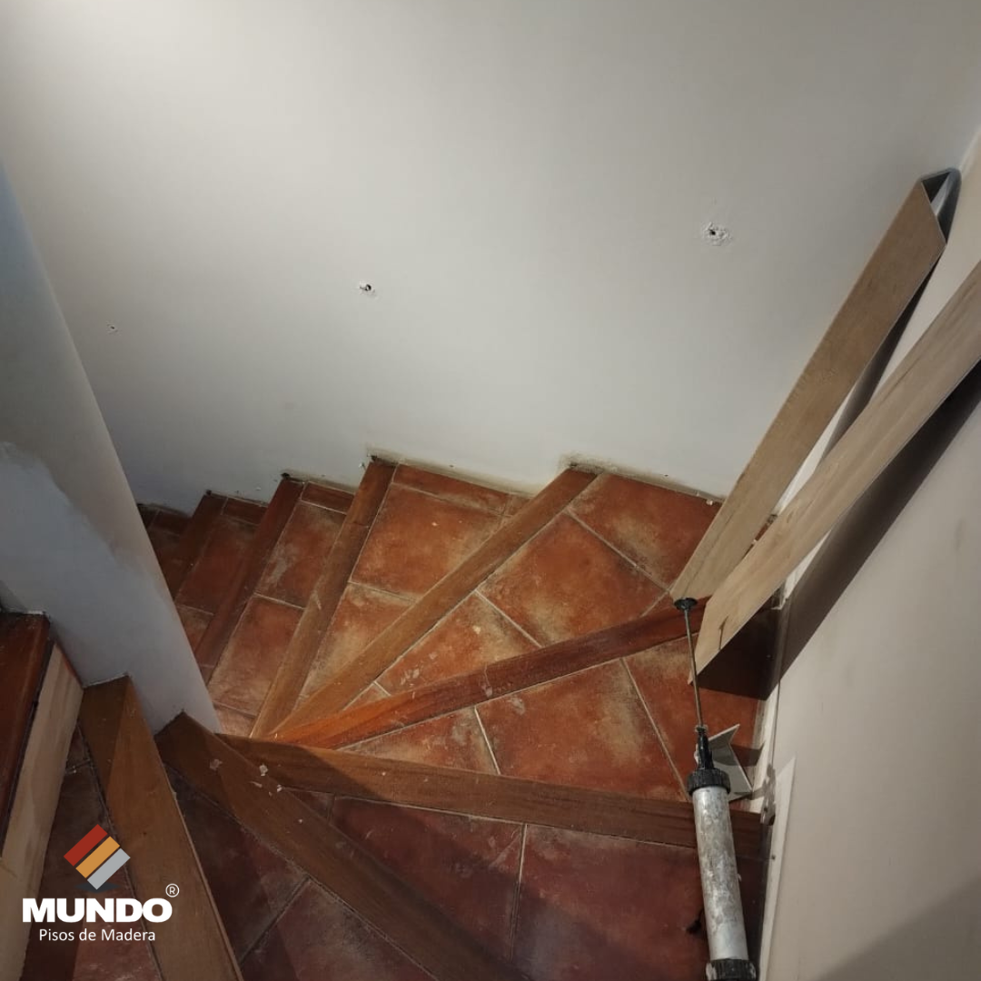 Escalera con base de fenólico resistente y piso vinílico de alto tránsito.